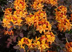 Denne R.luteum hybrid er en usædvanlig plante. Kontrasten mellem det auberginefarvede løv og de knaldorange blomster i ​​maj/juni, er et fryd for øjet. Derudover er der duft i blomsten. Væksthøjde mellemhøj og oprettet. Vinterhårdførhed 1.