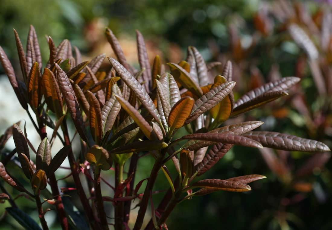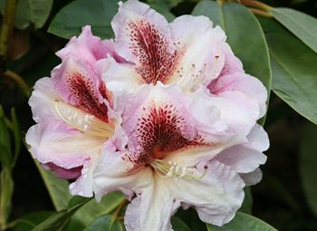 Navnet siger det. Denne specielle storblomsterende blomst er noget særlig. Blomstrer i maj/juni med store hvide/rosa blomster med rødbrun gane. Er storbladet og kompakt i væksten. Kobberfarvet nyvækst. Hårdfør på beskyttet vokseplads. Vinterhårførhed 2-3.